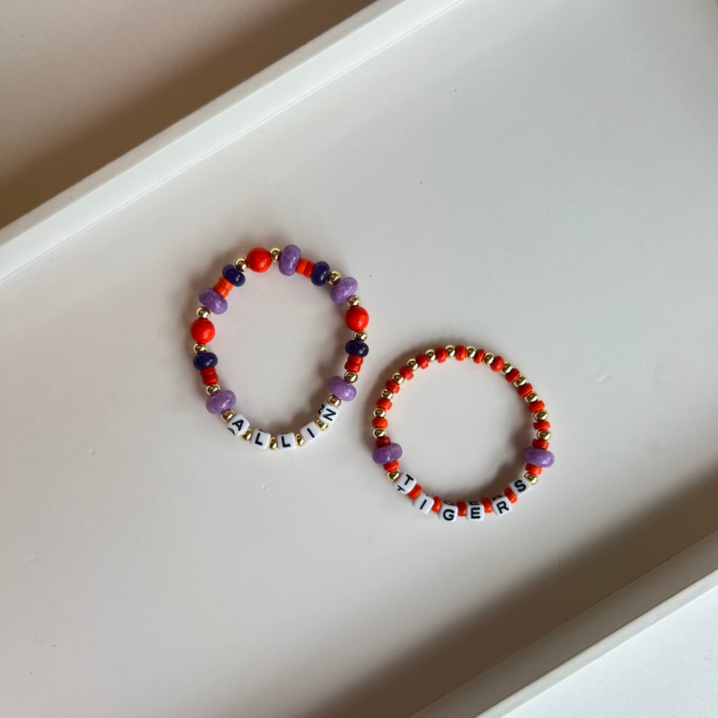 Stack up your spirit with our beaded Game Day Bracelets—each one is a colorful nod to your favorite team, complete with school-inspired combos and spirited sayings! Whether you’re cheering from the stands or showing love from afar, these stretchy, stackable bracelets are the perfect way to rep your team in style. Mix, match, and layer them up for the ultimate game day look!