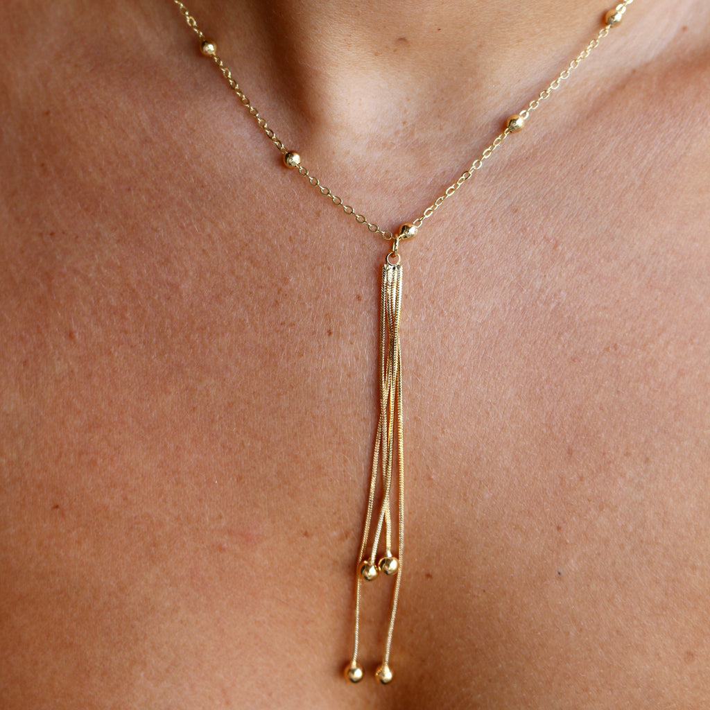 Dainty gold tassel necklace that is practically perfect in everyway! flirty and fun to wear and a must have necklace!