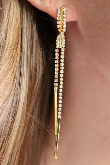 Dazzle from every angle and be "That Girl" in our Shine Bright Linear CZ Drop Earrings. Designed with two cascading rows of brilliant cubic zirconia stones anchored by sleek gold bars, these earrings move beautifully with every step — catching the light and commanding attention.