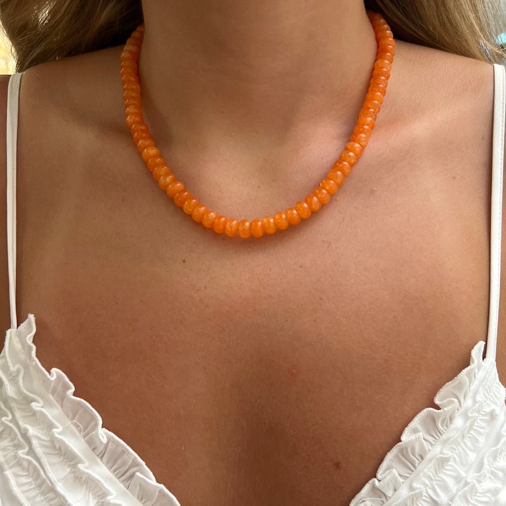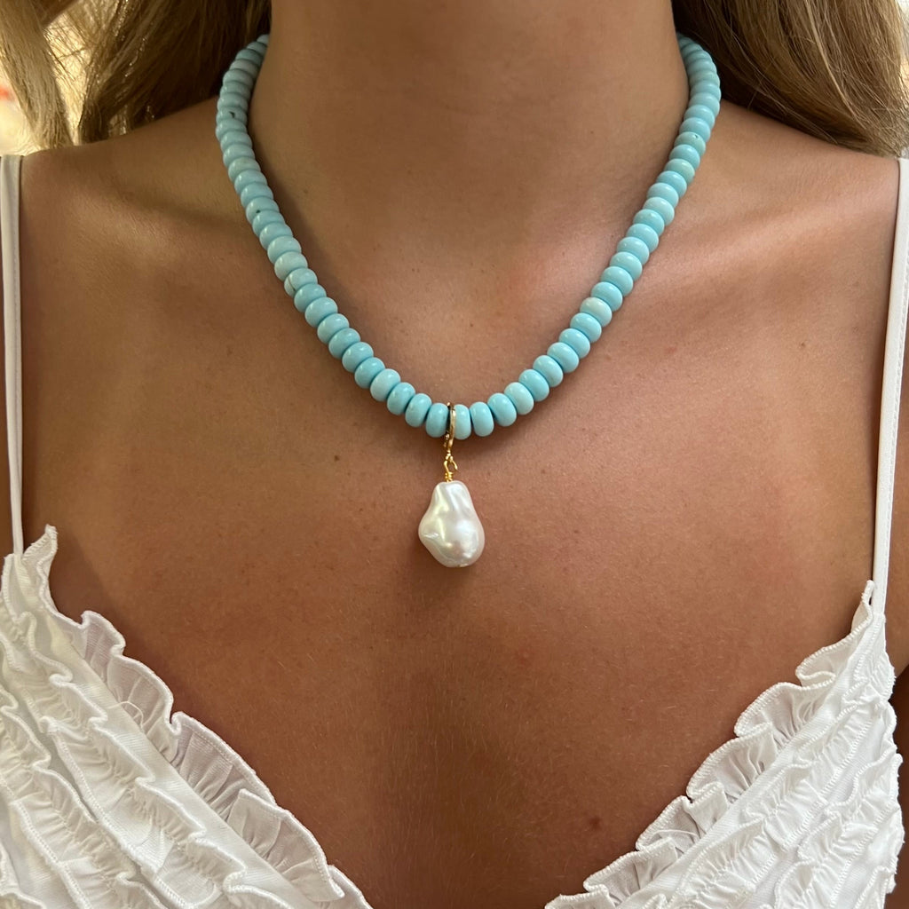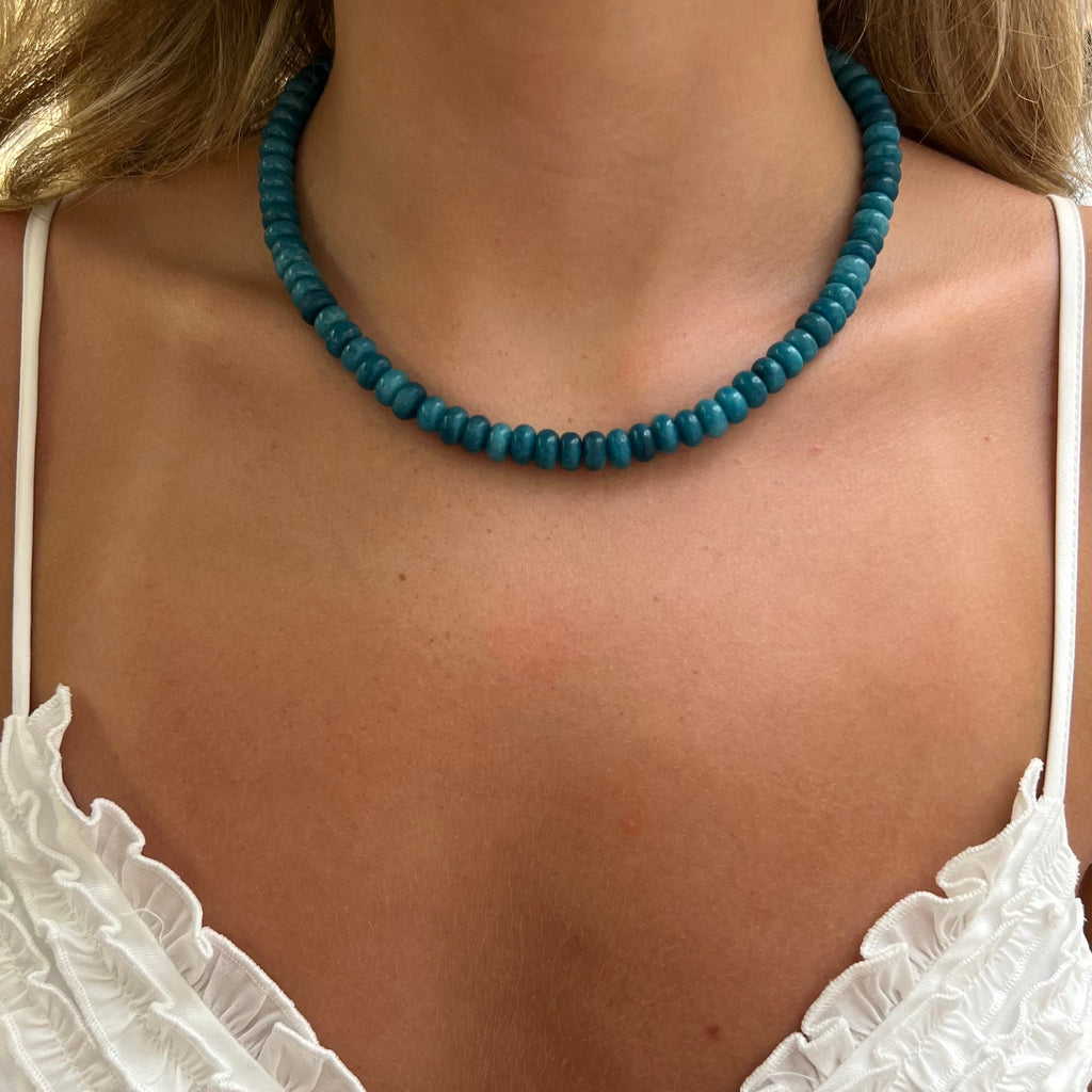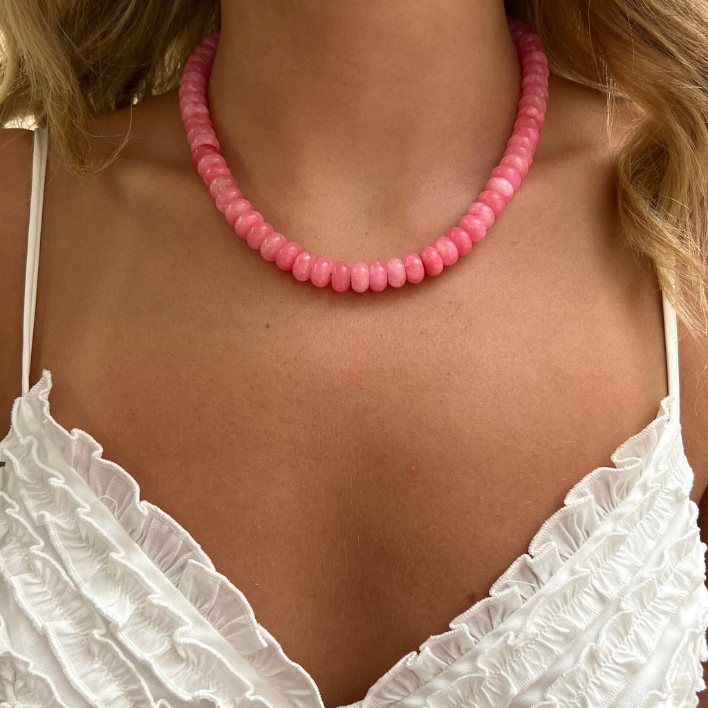 Each colorful strand is filled with gemstone beads and can be customized with your choice of one of four charms — a heart, coin, cross, or pearl.