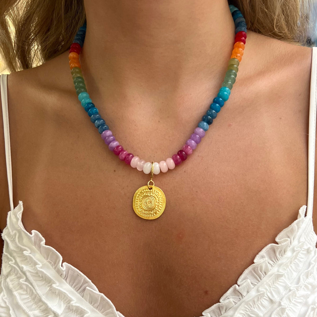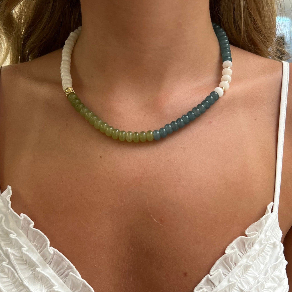 Say hello to the Gemstone Deluxe Necklace — a little more elevated, a little more golden.